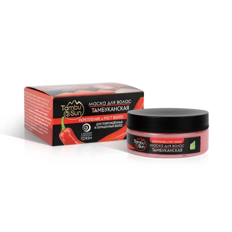 Тамбуканская маска для волос содержит вытяжку целебной грязи озера Тамбукан и натуральные растительные масла, которые, проникая глубоко в структуру волоса и кожу головы, могут насыщать их необходимыми витаминами и минералами, укреплять и питать корни, тем самым останавливая выпадение волос и активизируя их рост, мягко и эффективно очищать кожу головы, обогащая её кислородом, помогать устранять проблему перхоти, зуда и раздражения, восстанавливать структуру тусклых, повреждённых, ослабленных волос, придавать локонам здоровый блеск и шелковистость, а причёске – дополнительный объём.